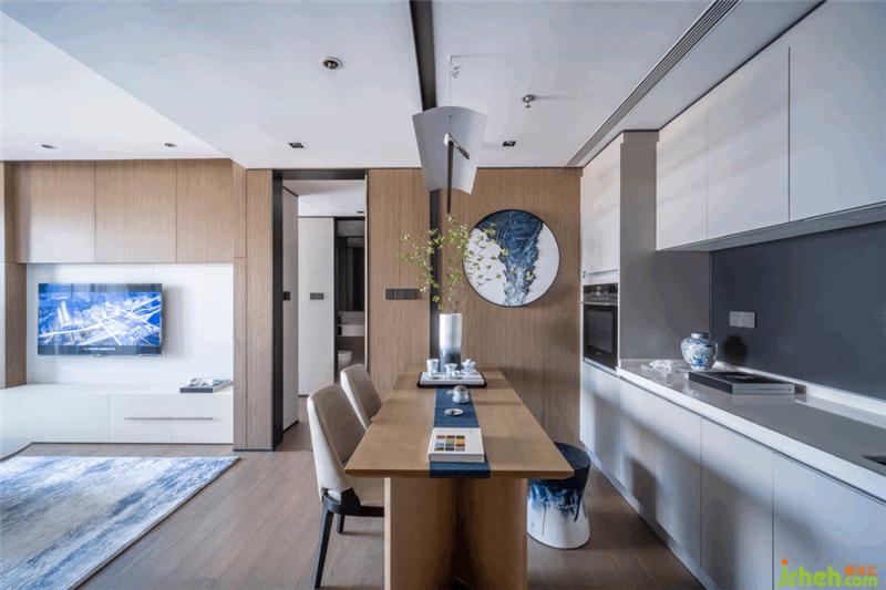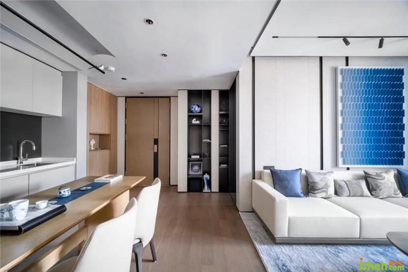 將花青色作為主色調(diào),這是一種文靜優(yōu)雅的深藍(lán)色,讓心靈重歸寧靜致遠(yuǎn),用茶色書寫四季。新中式的設(shè)計(jì)主打無形之境,打造超越日常的寫意東方生活空間,讓人沉浸于小隱生活,回歸生活本質(zhì),靜享生活恬靜淡然之美。