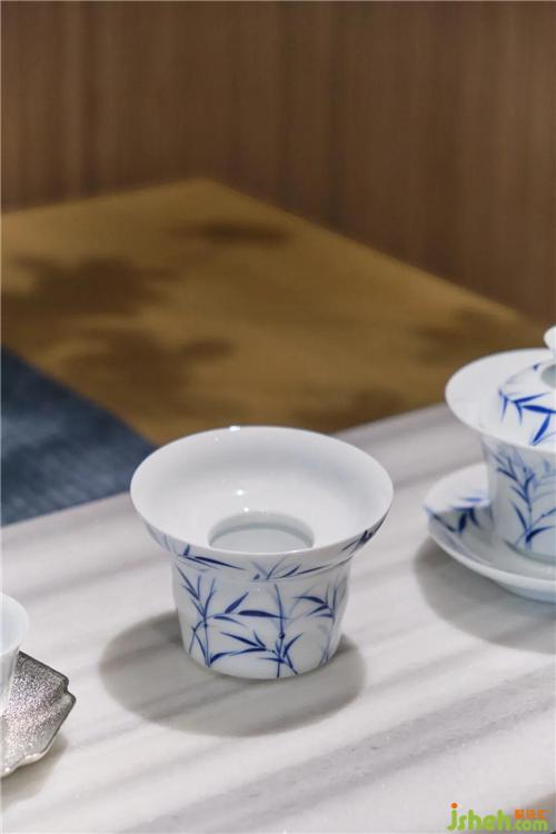 青花瓷墩,靈動(dòng)氣韻,憑添休閑氣質(zhì),而且有簡約時(shí)尚感的白色青花隔斷背景,亦古亦今,亦繁亦簡。