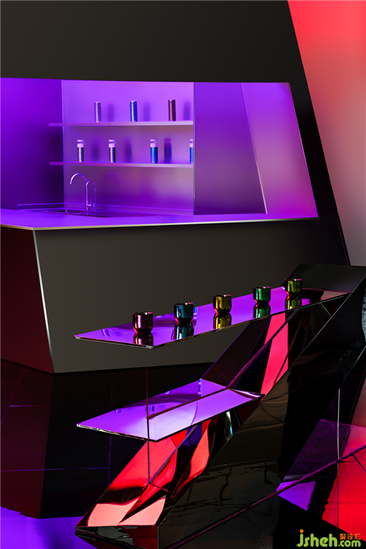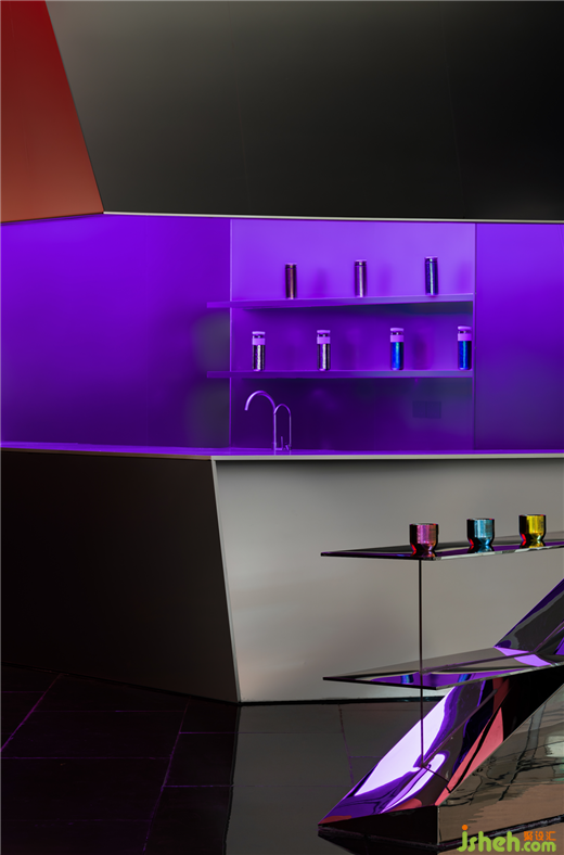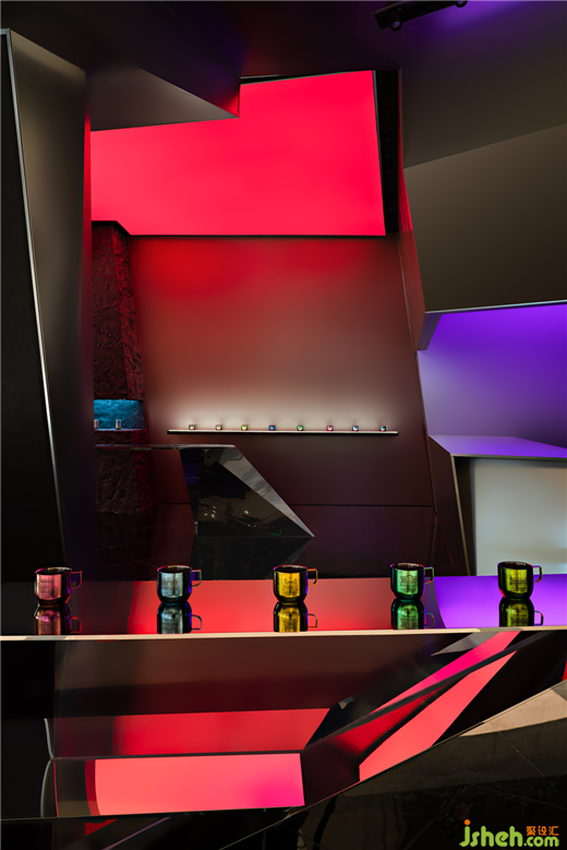 空間原始場(chǎng)地位于來(lái)福士商場(chǎng)主動(dòng)線位置,和場(chǎng)地形成矩形看面。基于重慶經(jīng)緯縱橫的立體城市結(jié)構(gòu)與空間的新商業(yè)需求,展廳設(shè)計(jì)師意圖打造一個(gè)富于吸引力的場(chǎng)景化空間,在CBD高速翻轉(zhuǎn)的場(chǎng)景里營(yíng)造一個(gè)多維舞臺(tái),金屬鈦的前世今生在這里拉開(kāi)大幕。