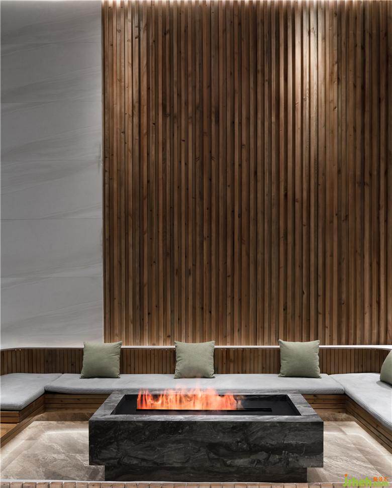 在現(xiàn)實(shí)生活中,人們生活在喧囂繁雜的鋼筋水泥城市里,內(nèi)心幻想著一處歸隱避世的清凈之所,以此為創(chuàng)意的閑庭后院就是試圖實(shí)現(xiàn)這一理想,用素雅的水泥磚以及質(zhì)樸的木材做成的都市庭院,構(gòu)建一處暫避浮躁喧囂、凈化心靈之地,庭院一邊做成的圍合式休閑區(qū)舒適愜意,休閑區(qū)中央石臺(tái)放置的戶(hù)外烤爐更給人送去一絲暖意。這就是主創(chuàng)的設(shè)計(jì)初衷。