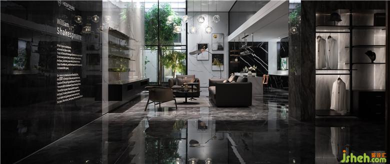 選材區(qū)以產(chǎn)品展示為核心,通過(guò)疏密有致的幾何體塊序列進(jìn)行敘事。非對(duì)稱空間是在空間維度上尋找平衡點(diǎn),是相對(duì)復(fù)雜且豐富的,空間體量和疏密有致的幾何體塊之間的關(guān)系形成了空間獨(dú)有的藝術(shù)形態(tài),在細(xì)節(jié)處理上,對(duì)材料的對(duì)縫,收邊,比例都經(jīng)過(guò)細(xì)致的推敲和設(shè)計(jì)和精磨精切。追求品質(zhì),而這就是建筑對(duì)使用者體現(xiàn)出的尊重感。黃銅等金屬材質(zhì)低調(diào)地出現(xiàn)在空間中,使得室內(nèi)的寧?kù)o氛圍多了些許豐富的變化。而木材與石材的運(yùn)用,亦使空間多了些溫潤(rùn)及細(xì)致的表達(dá)。