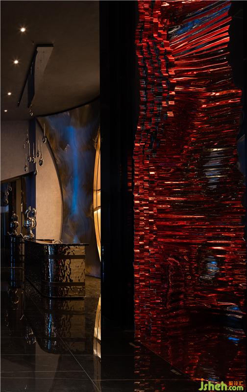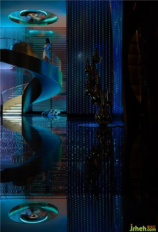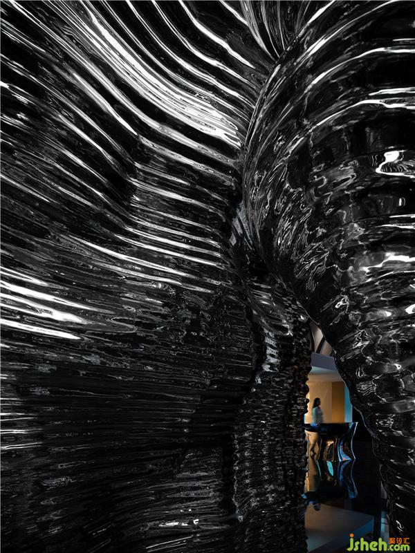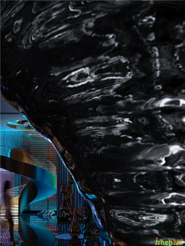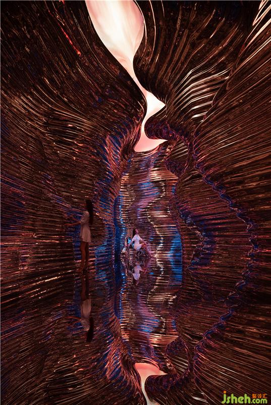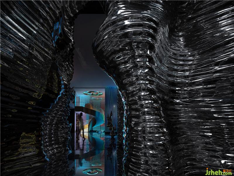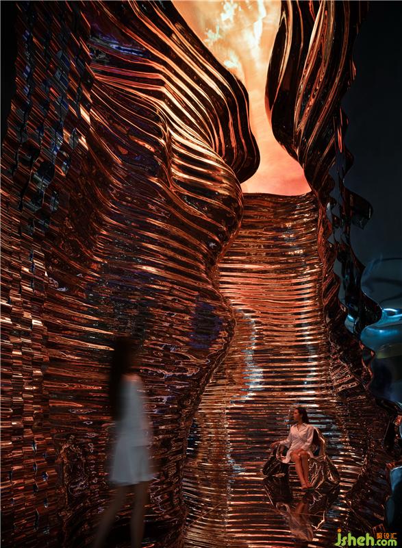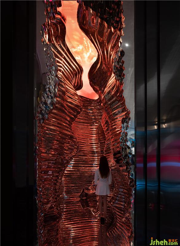 設(shè)計(jì)師在此空間用不銹鋼打造了一個(gè)飛流直下的瀑布形態(tài),瀑布從天花一瀉而下,在地面濺起漂亮的水花,兩側(cè)的墻壁垂直聳立,幾滴雨露附著在巖壁上面佛山展廳設(shè)計(jì),一彎天橋從地面旋轉(zhuǎn)升起,穿過(guò)兩端的巖壁直到瀑布面前,以此營(yíng)造一 種高山流水小橋聽(tīng)瀑的浪漫意境!更有一種“我在橋上看風(fēng)景,橋下的人在看我”的空間哲學(xué)!
