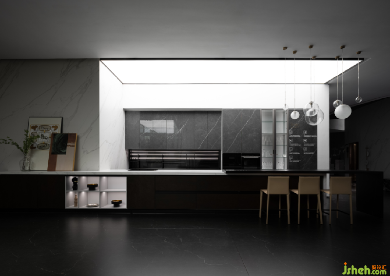 在細(xì)節(jié)處理上,對(duì)材料的對(duì)縫,收邊,比例都經(jīng)過(guò)細(xì)致的推敲,對(duì)加工細(xì)節(jié)的極致追求,體現(xiàn)出對(duì)使用者的尊重感。將金屬黃銅材質(zhì)低調(diào)地搭配在空間中,使得室內(nèi)的寧?kù)o氛