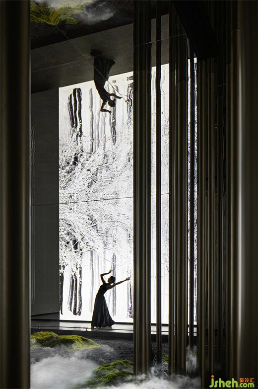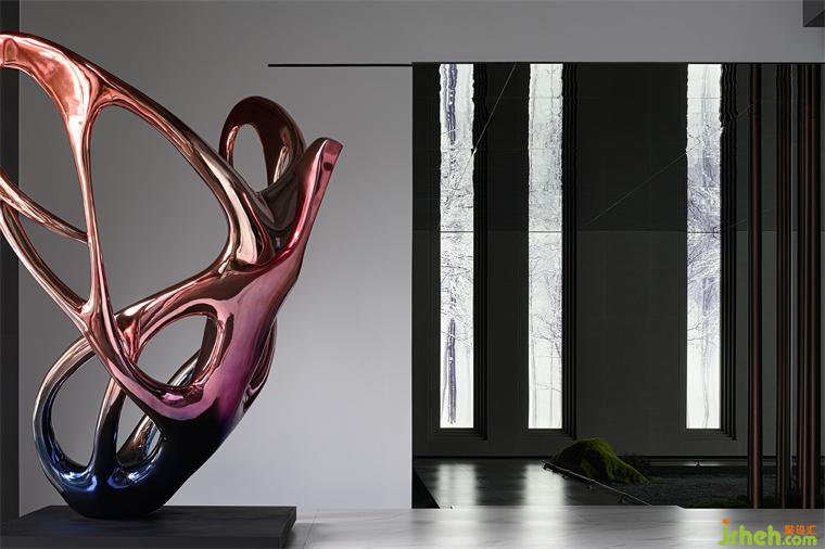 大堂角落幻彩的不銹鋼蝴蝶裝置凸顯品牌一貫的時(shí)尚感,深藍(lán)色的奢石前臺(tái)則展現(xiàn)了品牌的低調(diào)奢華的一面。觀者沉浸于這個(gè)獨(dú)特空環(huán)境中,全方位感受品牌的精致與時(shí)尚。
