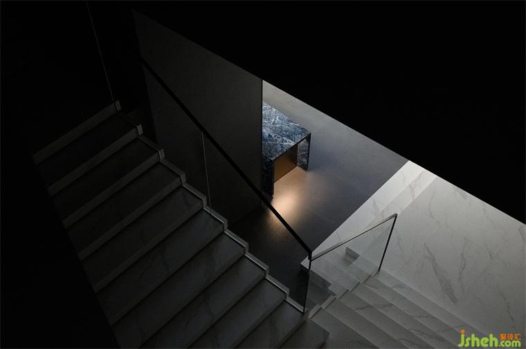 項(xiàng)目的設(shè)計(jì)靈感來自一只破繭而生的蝴蝶,它的故事如同一場奇妙的變化,展瓷磚總部設(shè)計(jì)現(xiàn)出品牌的重生與煥新。展廳空間采用了極致簡約的黑白灰調(diào)性,深灰色的水泥質(zhì)感墻面以及白色連紋大理石樓梯加上純白色絲印烤漆玻璃背景墻,單純而寧靜中透出的高貴優(yōu)雅,彰顯品牌對(duì)意式極簡美學(xué)的堅(jiān)持。
