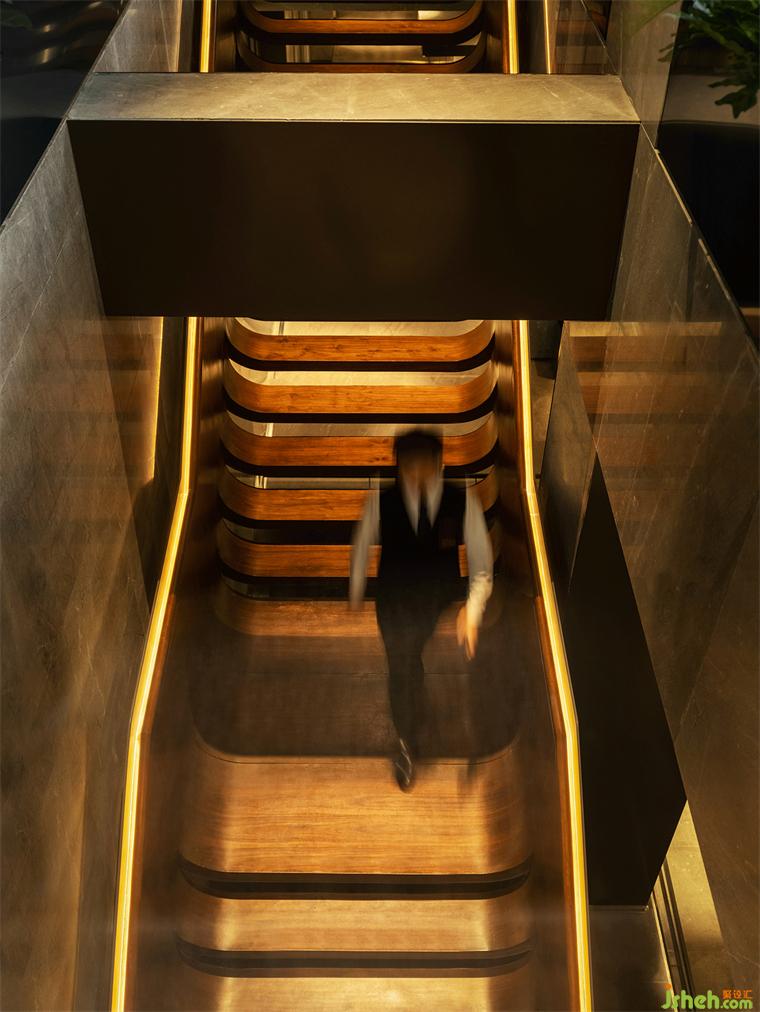 穿過長廊,湘江大講堂氣勢不凡,書柜上陳列的《四庫全書》已成為綠城集團的一大文化標志。裝修設(shè)計一層中最獨特的景觀非那條以“湘江江河”為靈感,并結(jié)合綠植的垂直樓梯莫屬,它就像一條條蜿蜒的水道帶我們匯入美好生活的新世界。