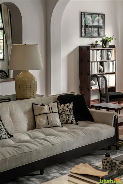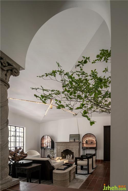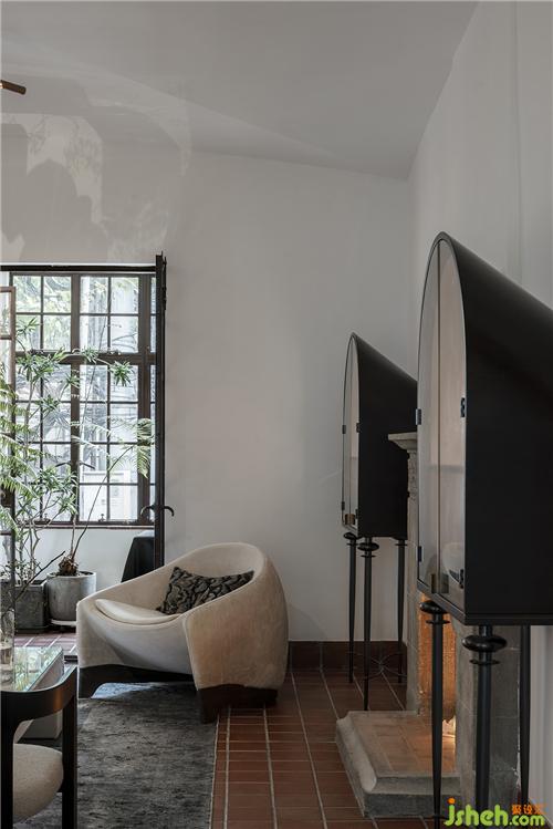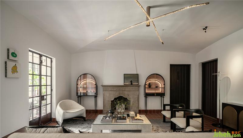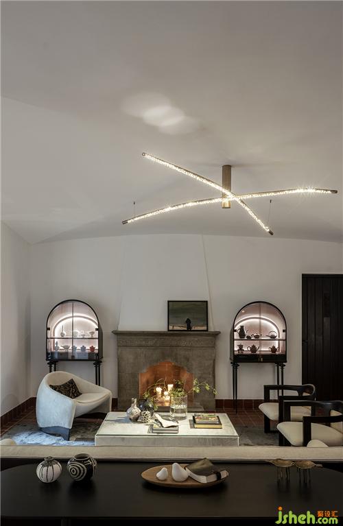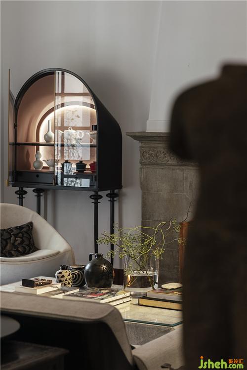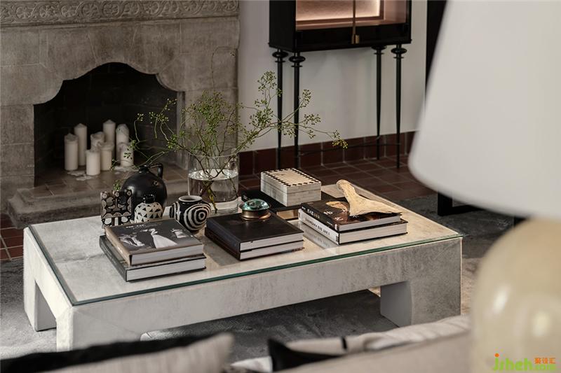 石材質(zhì)壁爐、大理石茶幾、藝術(shù)擺件陳列,玩味藝術(shù)感官中,傳遞海派精致,糅合當(dāng)代空間藝術(shù)的先鋒態(tài)度??臻g中的家具為設(shè)計師黃全原創(chuàng)設(shè)計,形神兼?zhèn)?,考究低調(diào),注重形態(tài)美與舒適感。