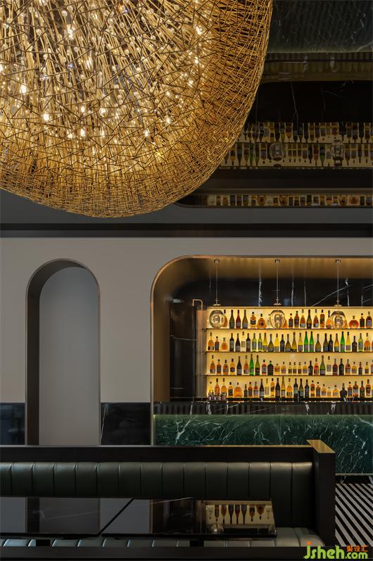 抱著生活夢(mèng)想,人們享受著都市的月光。這是一種理想的寄放,短暫逃離城市,擁抱城市綠谷。本著對(duì)空間本身的思考,設(shè)計(jì)師將都市夜的夢(mèng)境與酒意注入其中,觥籌交錯(cuò)間結(jié)合空間燈光的運(yùn)用,琉璃酒杯色中,撫慰心緒。