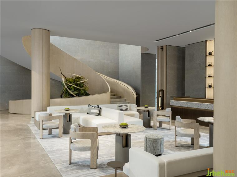 洽談區(qū)以「幾間」原創(chuàng)家具為主,展現(xiàn)出空間的秩序感。素雅的空間配色貫穿整個(gè)空間,幾何間增強(qiáng)空間層次感和品質(zhì)感。