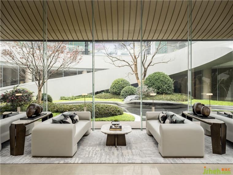洽談區(qū)以幽暗山谷,流溪飛泉為元素,營(yíng)銷中心設(shè)計(jì)展現(xiàn)千里江山如錦似繡、氣勢(shì)恢宏之景。