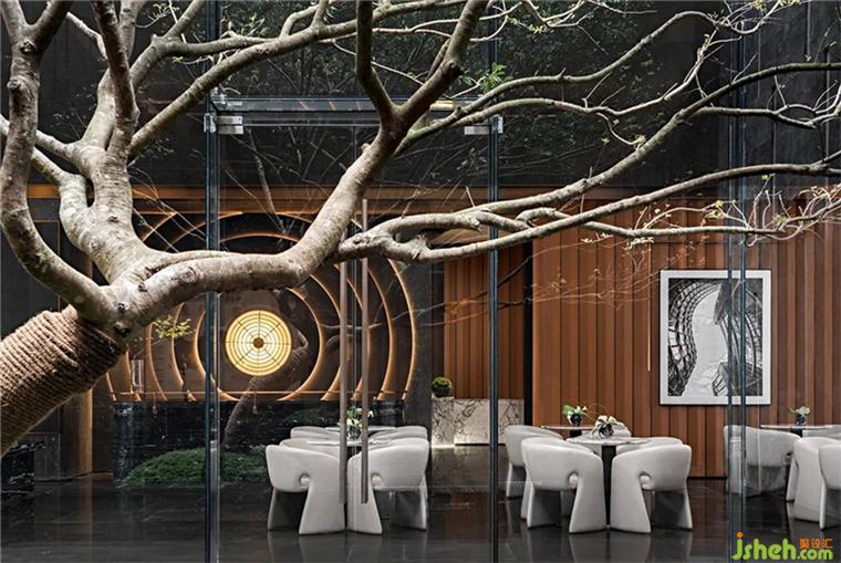 成都龍湖瑰云里營銷中心設計通過景窗向內(nèi)觀看,視角的轉換變幻出更多的層次和感受,將這份適意融入眼前的風物,豐富視覺的同時,自在構筑天地人和,東方美學的無盡意趣與空間內(nèi)的低奢氣息相融,繁華之外,動靜之間的棲居哲學彌散縈繞。