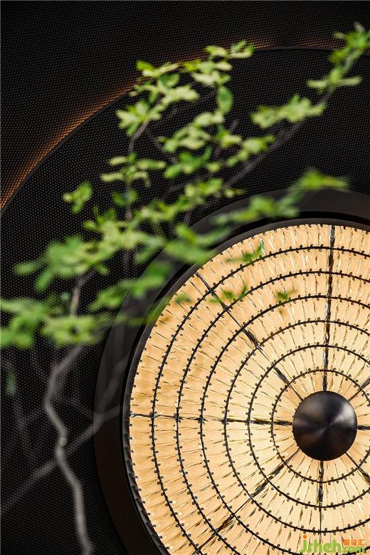 利落的幾何變體作用于空間,如水波紋擴散,如沙脊線暈染,綠意妝點其間,天地自然囊括于此。水吧區(qū)設計師與施華洛世奇聯(lián)合打造的水晶壁燈,營造空間視覺中心,古銅色金屬的厚重與切工水晶的剔透突破了工藝和創(chuàng)新的界限,照亮一室璀璨。