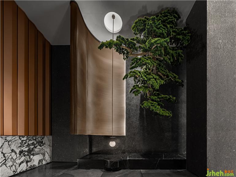 WJID取高奢酒店寶格麗為意象,成都龍湖瑰云里營銷中心設(shè)計將其大膽?yīng)毺兀鹳F而雅奢的文化精髓通過設(shè)計手法與空間融合,脫離傳統(tǒng)售樓空間的語境,打造一個生活藝術(shù)與度假氛圍交織的尊貴體驗空間。