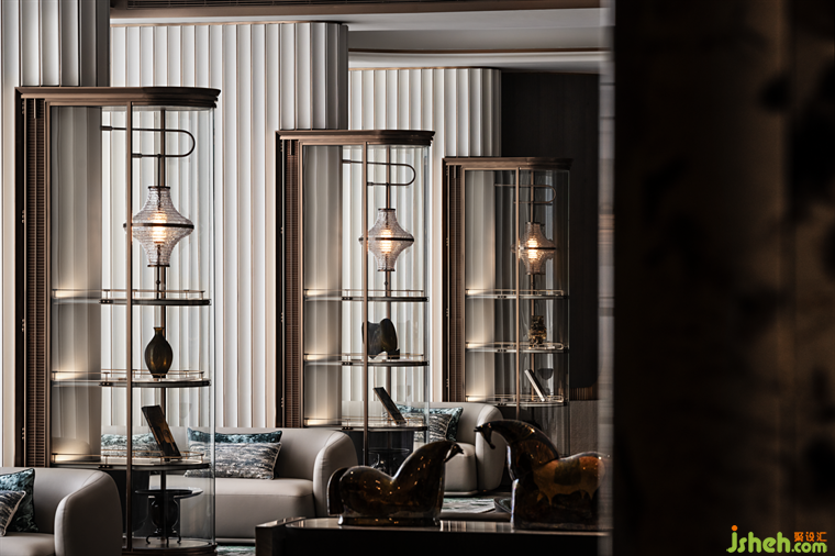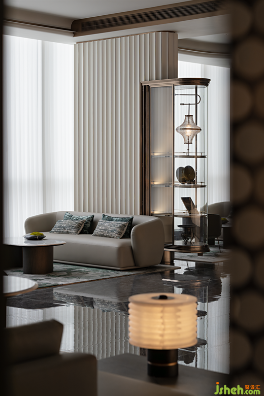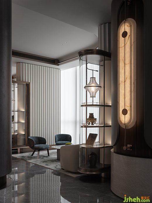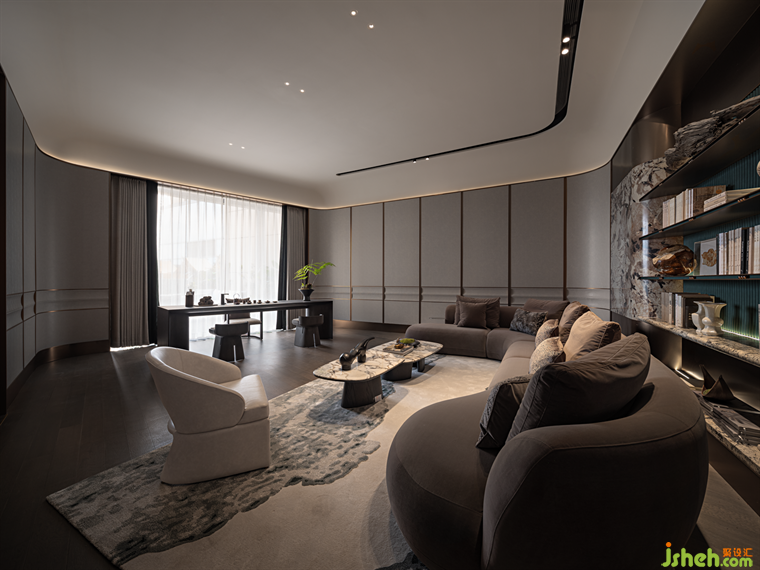 細膩的墻面紋理組合靈動通透的裝飾柜,隔出靜謐洽談區(qū),一束柔和的陽光從窗簾縫隙中灑下,無論是清晨的陽光還是傍晚的余暉,這個角落都散發(fā)著一種寧靜的美感,提供了一個舒適、愜意、私密的洽談空間。