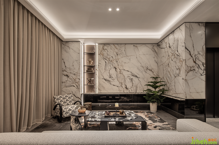 主臥融合了南洋風(fēng)的靈感元素,以米白、暖棕為空間主色調(diào),以金屬豐富細節(jié),賦予靜奢之美。竹編天花吊頂呈現(xiàn)出自由而松弛的悠然心境,結(jié)合海派現(xiàn)代的裝飾風(fēng)格,賦予度假酒店的慵懶氛圍。迷你酒吧的設(shè)計,隨心小酌,樂享生活的雅趣。