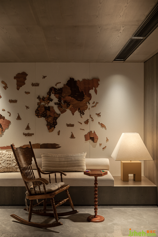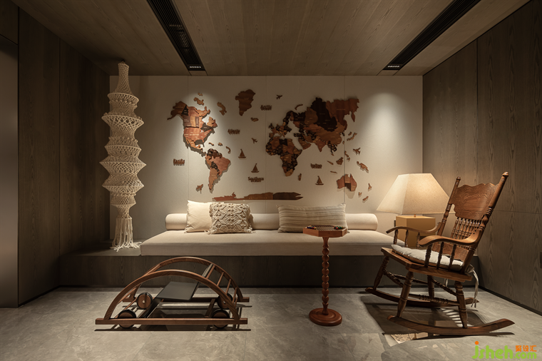家庭活動室以原木,自然素色,山林元素為裝飾,樣板房設(shè)計打造享林間之境,立于建筑之內(nèi),仿佛置身山林之中,安靜雅致。