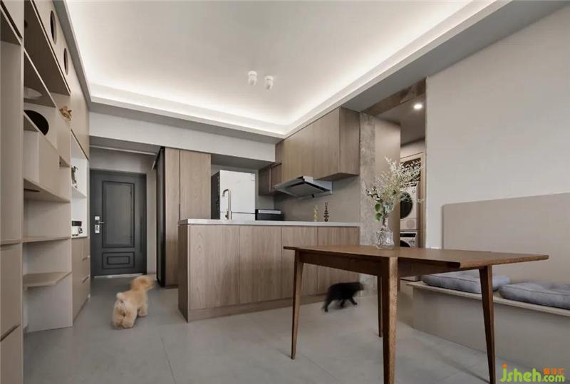 The design of housekeeping is the third space magic. Using life balcony, passenger and corridor, the three separate toilet, washing machine area, secondary garment area, locker and toilet cabinet have been built up, which has been greatly improved in the efficiency of living.