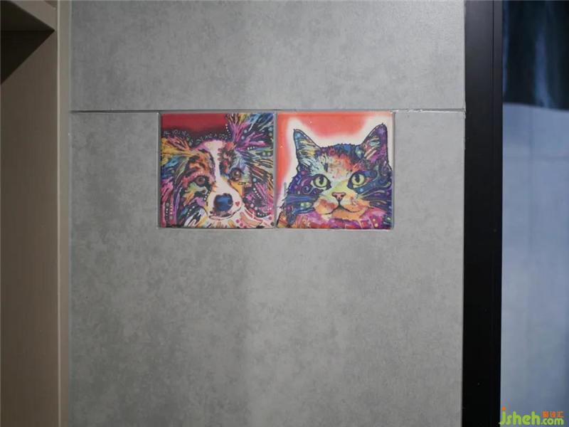 / 小故事:施工過程中設(shè)計(jì)師正巧在美國出差,看到手繪的小瓷磚,特意挑選了跟業(yè)主家寵物相像的圖案贈(zèng)與業(yè)主 /