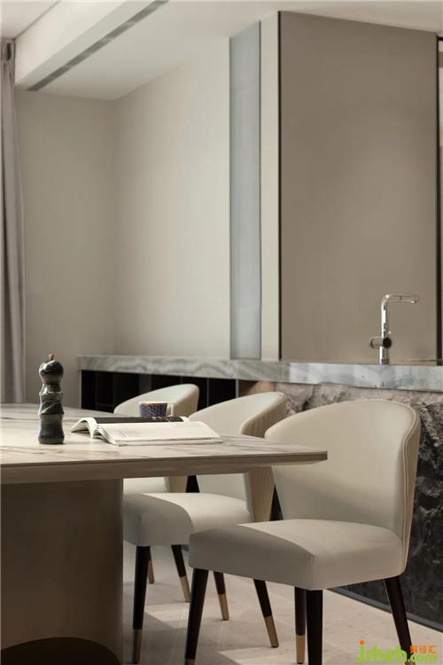 The dining chair changes from a straight line to an arc, and the color scheme is carefully considered