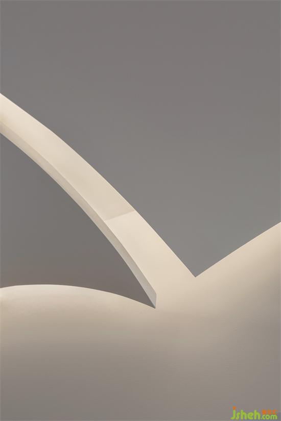 白凈的天花像書(shū)頁(yè)、像紙張被風(fēng)吹過(guò),微微卷曲。在這車(chē)水馬龍的瓊樓之上,沒(méi)有繁雜的裝飾,只有純粹的簡(jiǎn)單。家裝設(shè)計(jì)居住在這樣的空間里,物質(zhì)的東西不多,但卻能傾聽(tīng)自己的聲音,求得一份內(nèi)心的平靜。