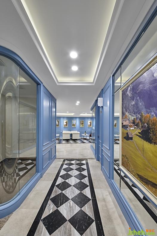 一層強(qiáng)調(diào)英倫的雅致及品位,用淺藍(lán)色歐式墻面穿插整個空間,強(qiáng)列的空間視角關(guān)系,讓客戶流連忘返,記憶深刻,達(dá)到商業(yè)醫(yī)院經(jīng)營的目的。