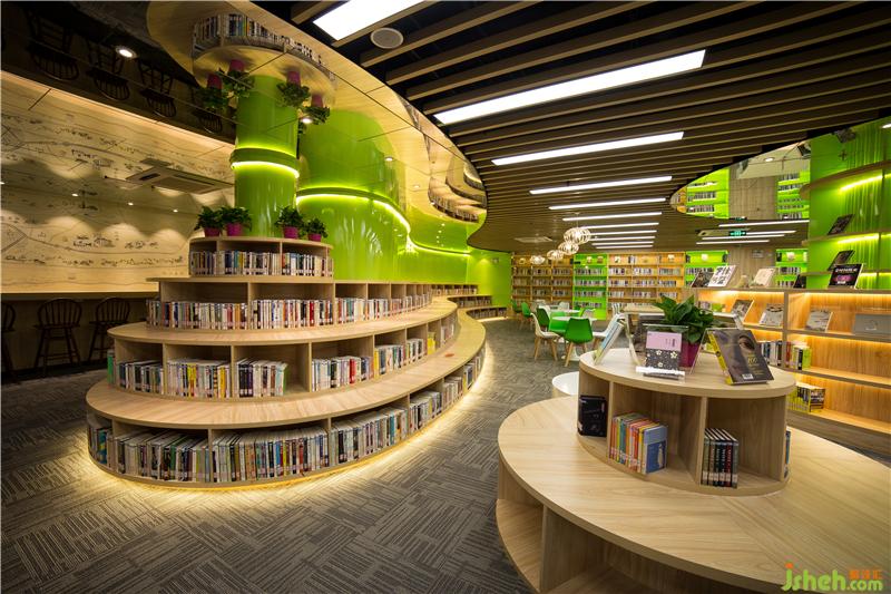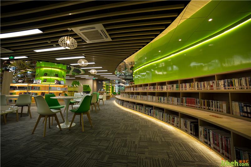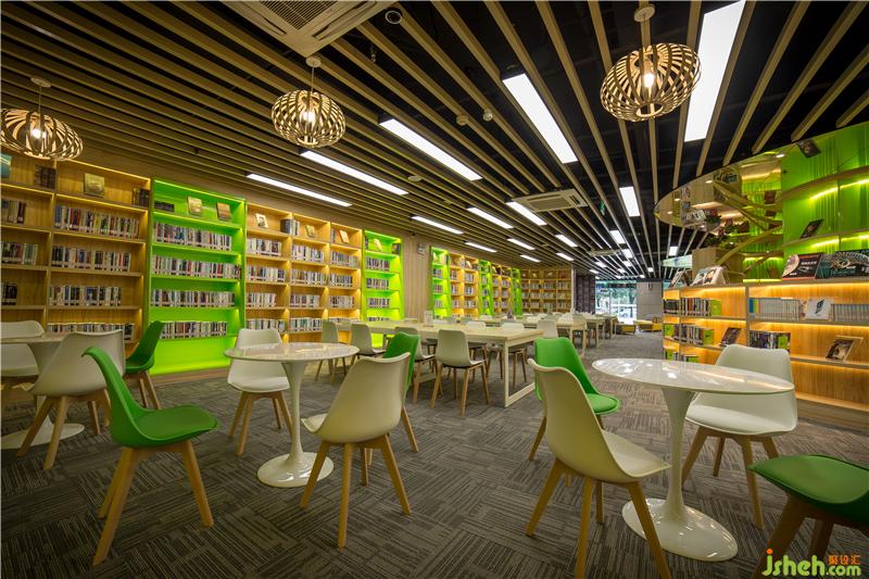 其中階梯閱讀區(qū)設(shè)計(jì)采用了國(guó)際高校圖書館通行的階梯式設(shè)計(jì),增加空間的靈動(dòng)感及空間利用率,給讀者創(chuàng)造了更加自由的閱讀空間。