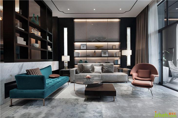 當(dāng)代空間的開(kāi)闊感,一直以來(lái)都富有強(qiáng)烈的“觀演性”。在這套別墅中,空間結(jié)構(gòu)的形式美,首先通過(guò)了選材本身的質(zhì)感與色彩勾勒出室內(nèi)的雍容不凡。