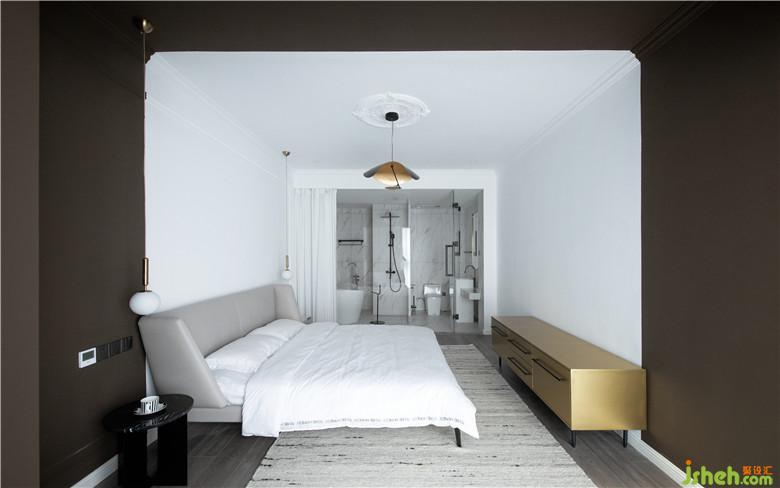 兩個(gè)都可作主臥的房間僅保留一個(gè),其中一個(gè)主臥內(nèi)衛(wèi)并到公共區(qū)域,并將主臥空間推出一半,另一半做步入式衣帽間。