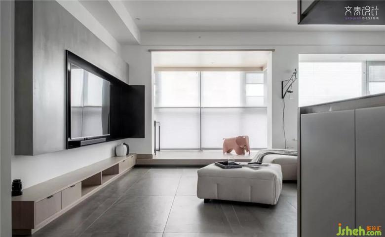 主是個十足的游戲控,除了安裝完現有的游戲設備還有掌機外,他還想買個體感游戲設備。因此,設計師除了將客廳范圍面積擴大之外,沙發(fā)選用了移動輕便模塊式沙發(fā)。這種沙發(fā)高度沒有普通沙發(fā)那么高,成人可以站坐在沙發(fā)背上。