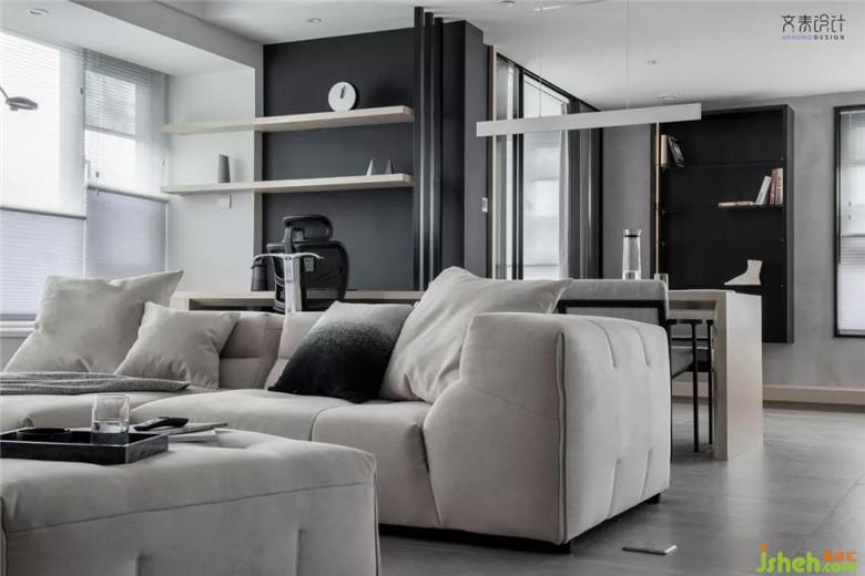 將客廳處的陽臺內包,用抬高層來與客廳做區(qū)域隔斷。在這里,他可以在陽光中做些簡單的文字工作,閱讀等。