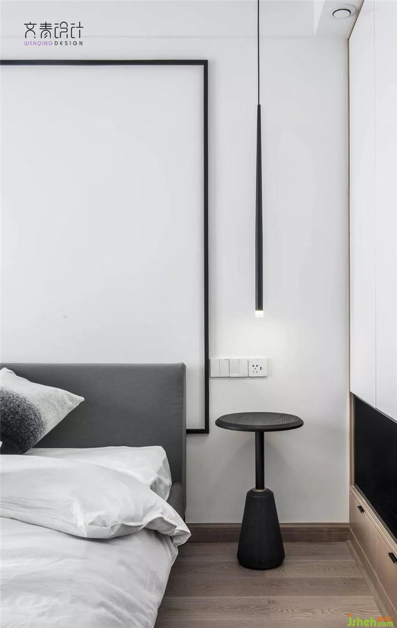 現(xiàn)代式的設(shè)計(jì),背景墻也做得十分簡(jiǎn)約,僅僅是乳膠漆墻面加上黑色線條點(diǎn)綴。特別的是這黑色線條則是對(duì)應(yīng)客廳電視背景墻的延伸。