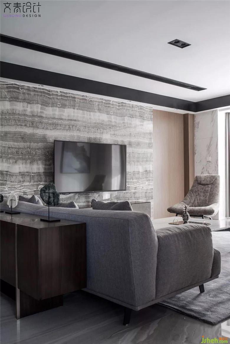 這樣的設(shè)計(jì),一是可以和書房直接連接起來,搭配線條黑鋼吊頂,有利于整個(gè)空間在視覺上的延展性,這樣面對面,相對式的布置,也比較容易營造互動交流的氛圍,下班后回到家和孩子們一起在客廳玩耍,也要更加溫馨融洽一些。
