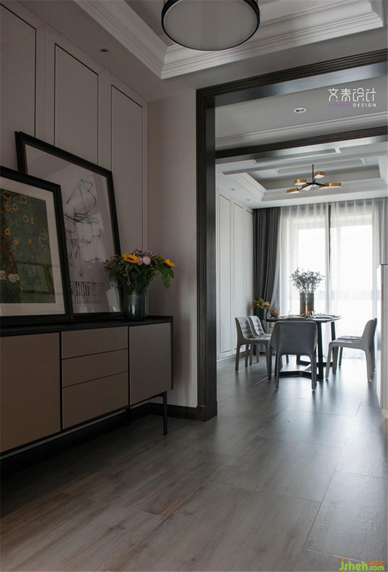 最后的硬裝改造是增加客廳、餐廳和過道的質(zhì)感,在這三個空間的墻面增加了不同的質(zhì)感和設(shè)計的硬包,適度的增加了一點輕奢感。