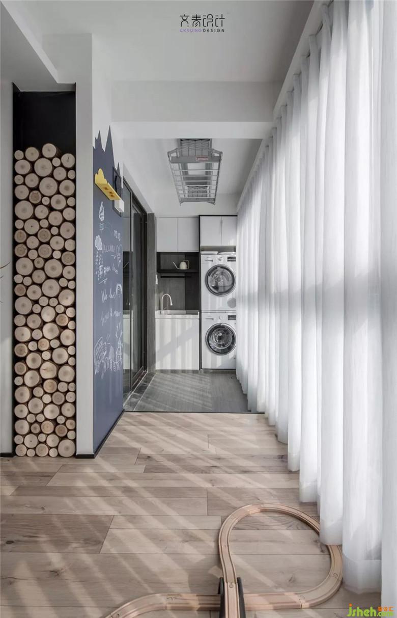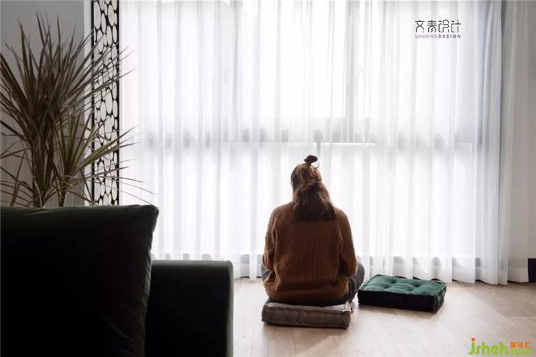 陽(yáng)臺(tái)特意抬高做了地臺(tái),將雜物區(qū)、休閑區(qū)、客廳明確區(qū)分開(kāi)。
