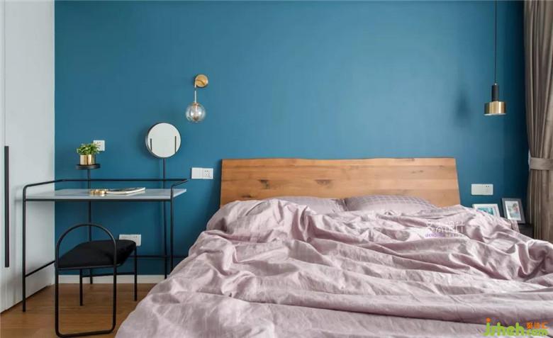這套房子現(xiàn)代的硬裝,也定做了太多白柜子,若是不加入點顏色,未免太過樸素。于是這面調(diào)了多次的湖藍背景墻就出現(xiàn)了。