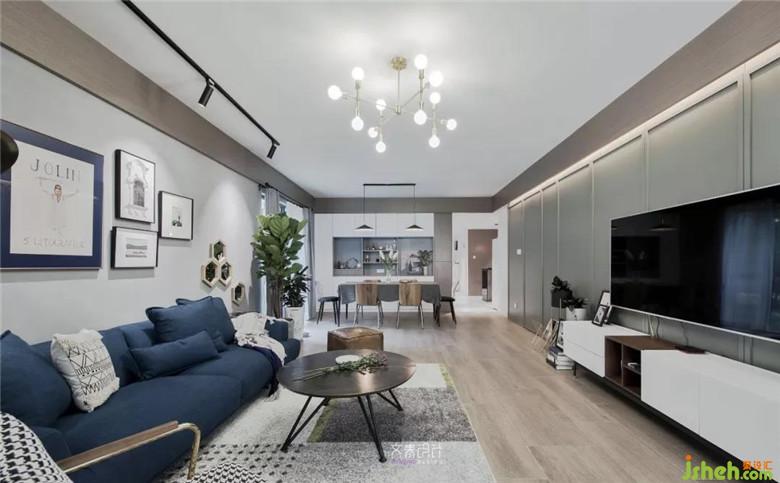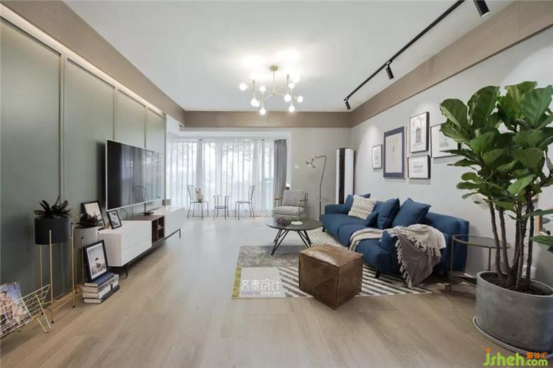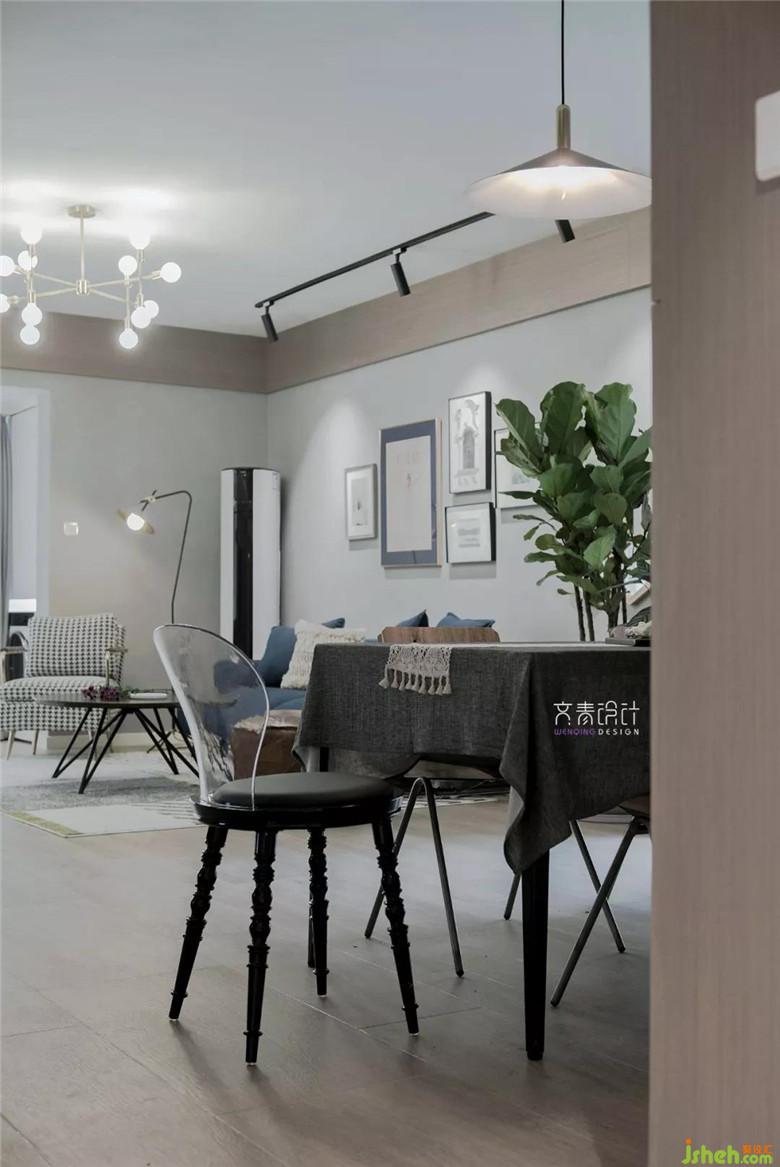 一樓的房子在采光、通風等方面不如高樓層。因此,風格就得選明亮的類別。在客廳的北歐風格基調下,由主燈、軌道燈、隱藏的燈帶三種形式的光源來烘托氛圍;