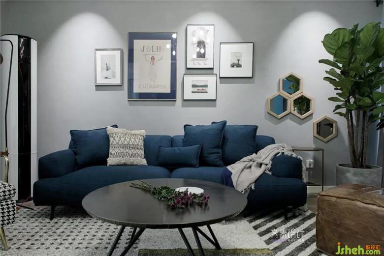 主沙發(fā)、單人懶人沙發(fā)等家具則是選用體態(tài)輕盈的款式;在低飽和度色彩的墻上作大塊面線條處理,以及組合裝飾畫修飾。
