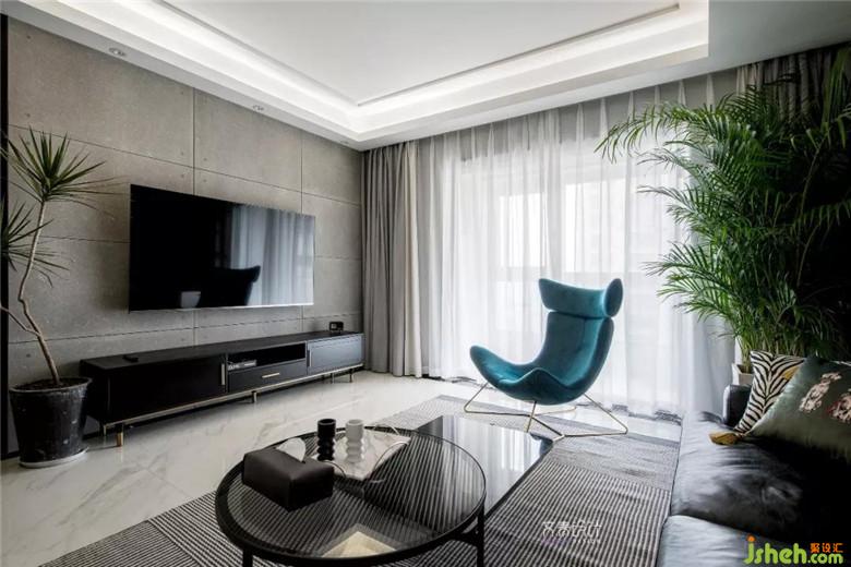 電視背景墻是原硬裝做的防水泥板墻,問(wèn)題不大就沒(méi)做改動(dòng)??蛷d空間整體搭配比較利落大氣,同時(shí)輔以綠植,掛畫,家具跳色細(xì)節(jié)點(diǎn)綴。