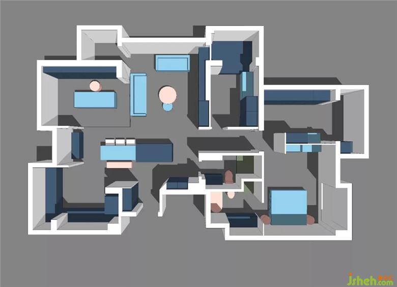從主臥到兒童房,再到公共區(qū)域的動線,全集中在一條過道上。這樣的動線設(shè)計(jì),合理利用上了每一寸空間,且在走動時便捷隨性。