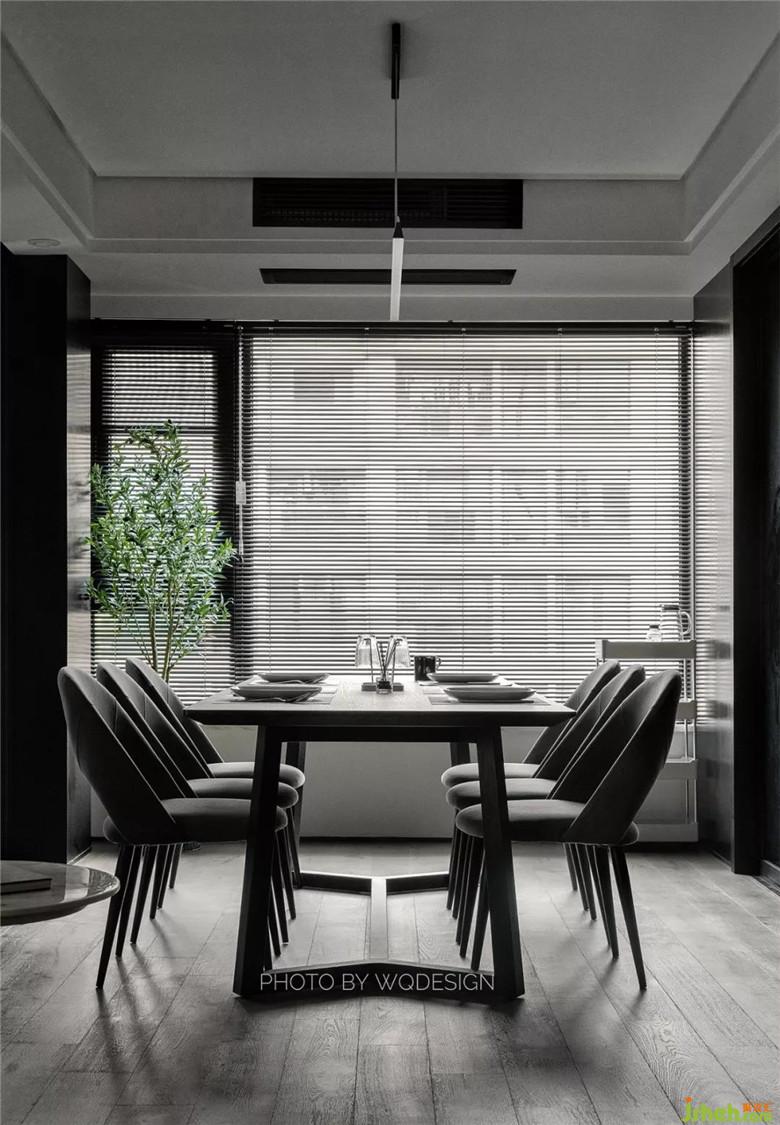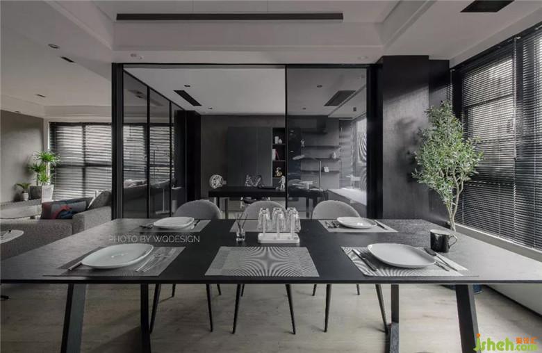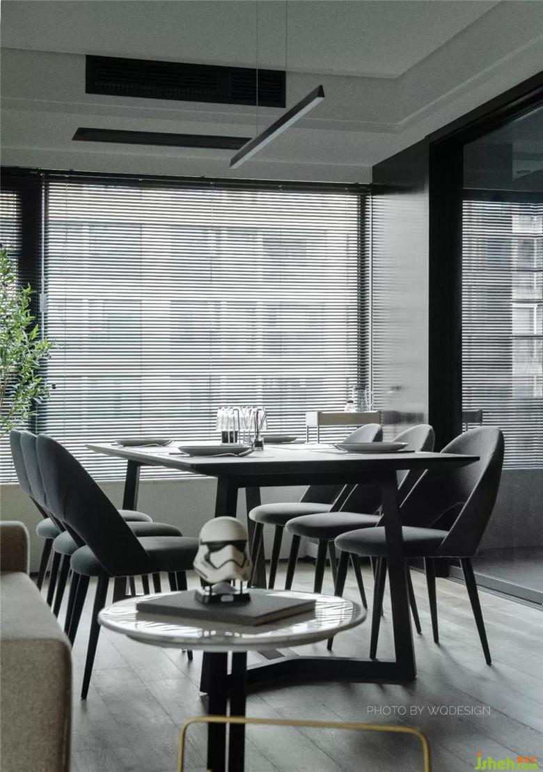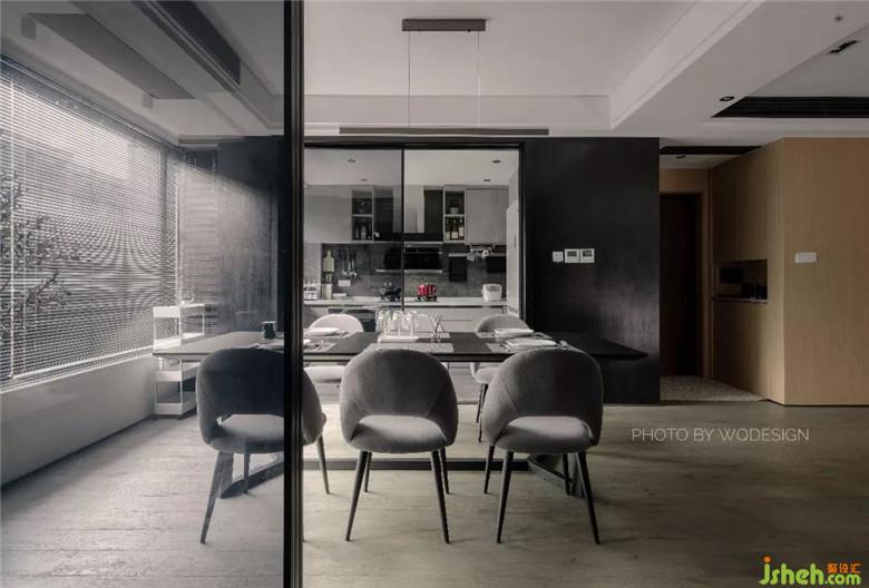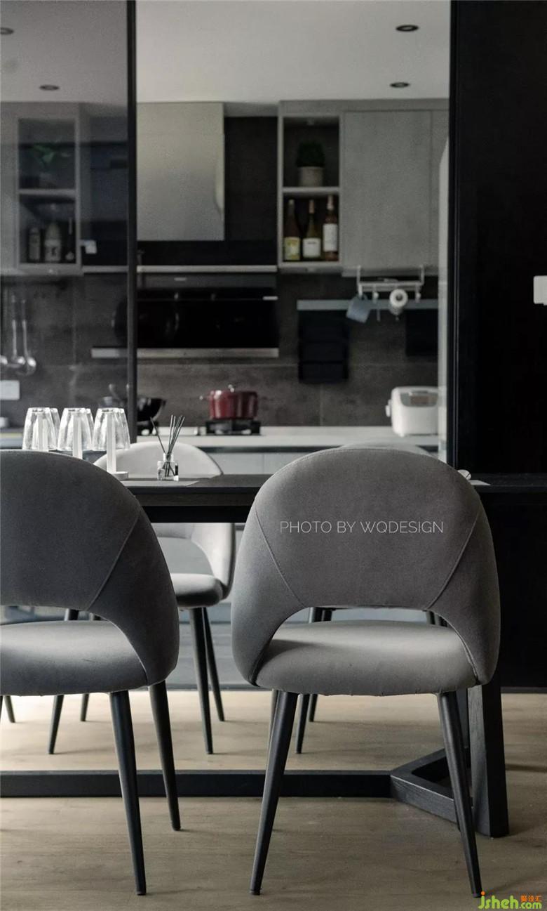 原廚房開(kāi)門方向由朝門廳改朝餐廳,將動(dòng)線合理化,方便上菜和餐廚交互。