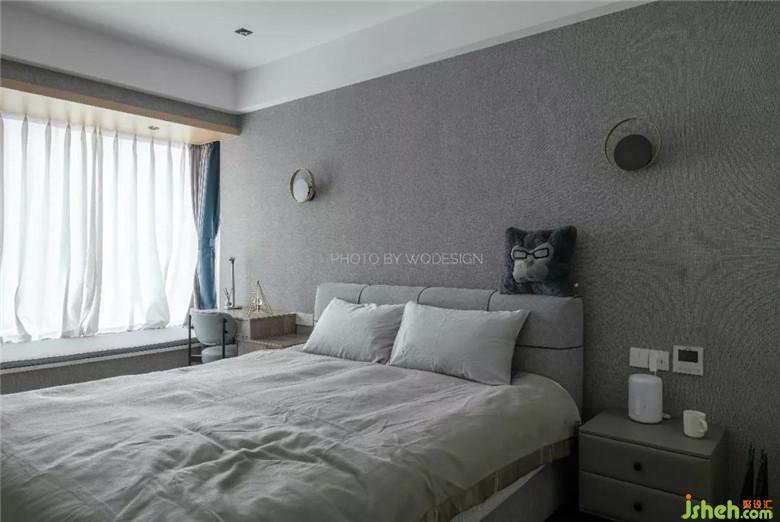 呂先生在和設(shè)計(jì)師對(duì)方案之初,就有把書房留作兒童房之用,因此電源留口都是臥室的配置。但近幾年這里做臥室的話,稍顯浪費(fèi)。因此,將兩面墻體都推倒,用黑玻作隔斷,保證一定的隱私性,空間質(zhì)感也很棒。半開放書柜,開放部分留出作擺件展示,另一部分用作藏書,十分實(shí)用。