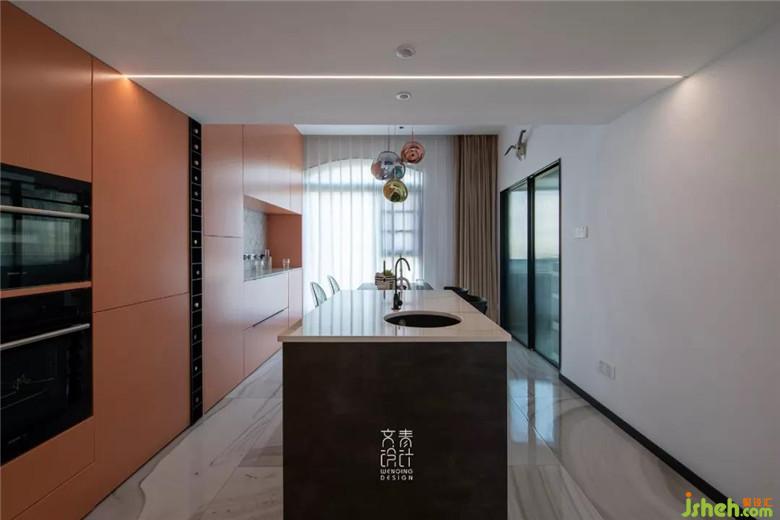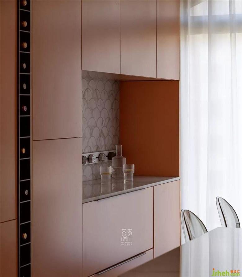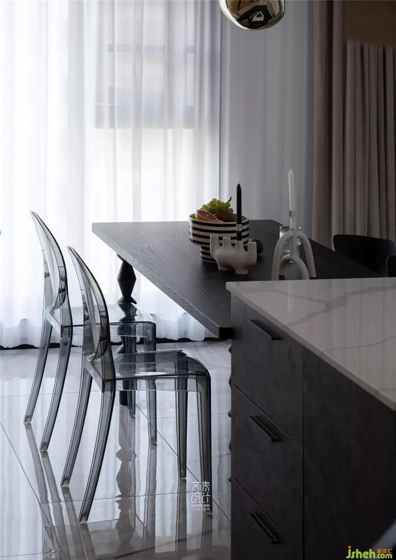 移出廚房的帶洗手池的中島、蒸烤箱、水吧臺(tái),分擔(dān)出廚房的一大部分功能,這個(gè)餐廳儼然又是一個(gè)西式廚房。