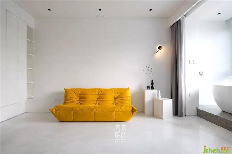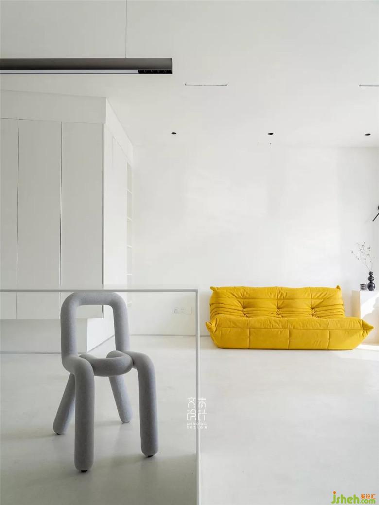 有人喜歡收納,喜歡一長溜的柜子;有人喜歡舒適,喜歡無處不在的而只能設(shè)備;但這里,沒有太多功能性,甚至人一多可能就會顯得有點不便,所有的設(shè)計只為一個“靜”,只為一個忙碌一天的人,下班回來就能放松心情。
