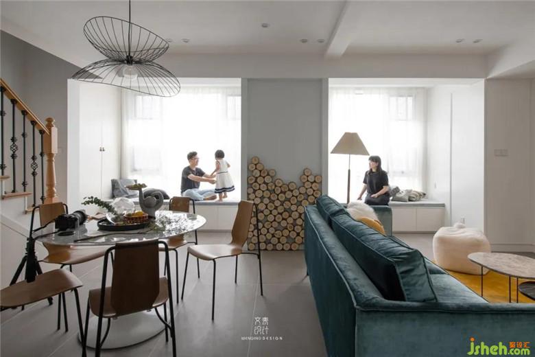 餐廳主要以簡約為主,只用了一盞鐵藝吊燈做裝飾,與客廳僅“一步之遙”,提高了家人之間的互動性。