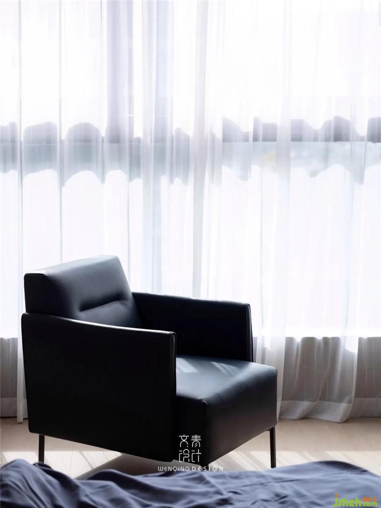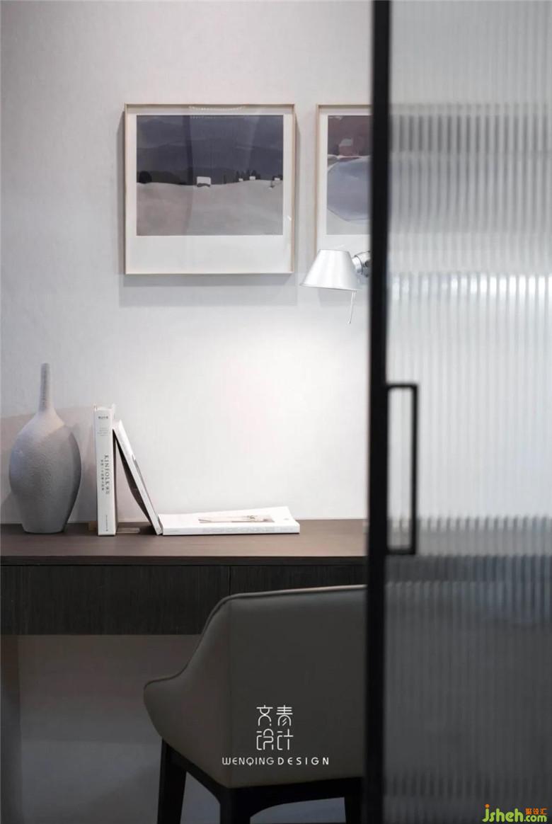 主臥延續(xù)了整體舒適的基調(diào),在床背景上我們做了一扇通往衣帽間的暗門,雖說主臥配備的衣帽間不大,儲物功能卻很實用,換季衣物都能有收納的地方。