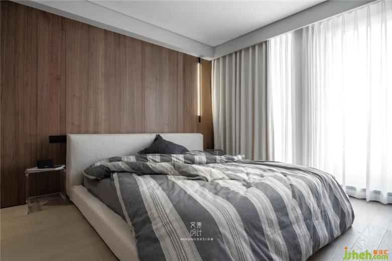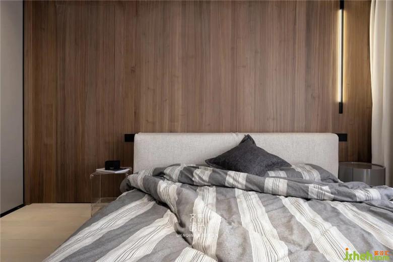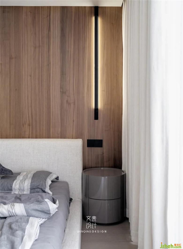 為了讓次臥空間更加開闊,我們將衛(wèi)生間藏了起來,床靠背的隱形門推進去就是次臥的內衛(wèi),關上隱形門也能與整個床靠背融為一體,毫無違和感。