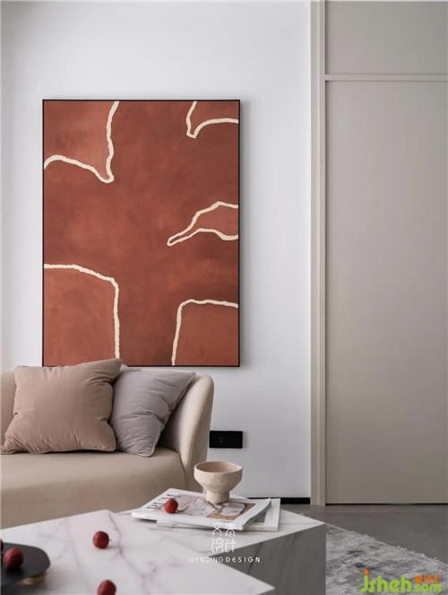 客廳采用溫暖的淺咖色作為整體基調(diào),讓人一進(jìn)屋就能感受到整個(gè)家的溫馨。放置充滿藝術(shù)趣味性的昌迪加爾單椅,猶如在空間中放了催化劑,將趣味的裝飾畫也連接起來(lái),溫馨與藝術(shù)趣味性,在這一刻就是一體。
