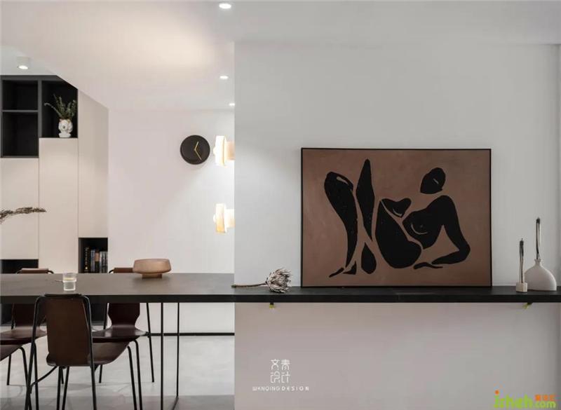 餐廳依承重墻定制餐桌,在玄關(guān)側(cè)做桌面延伸處理,入戶裝飾畫和小擺件都有了安放之處。