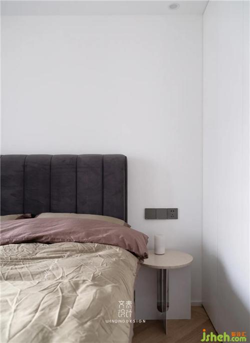主臥將衛(wèi)生間改成衣帽間,釋放全部墻體空間,用簡(jiǎn)單的玻璃柜塑造衣帽間,杭州裝修設(shè)計(jì)將一絲一毫的墻體空間都納入衣帽間收納所用。