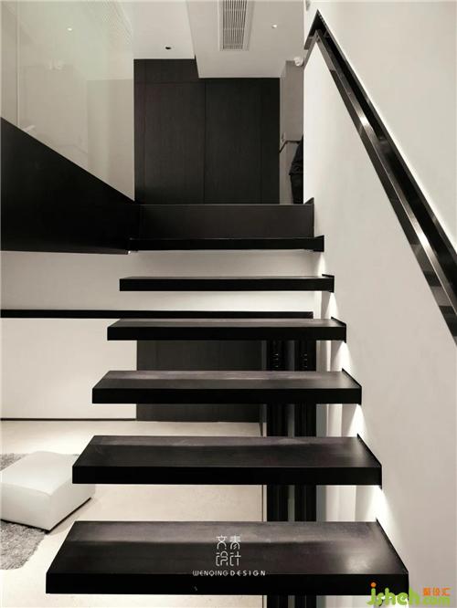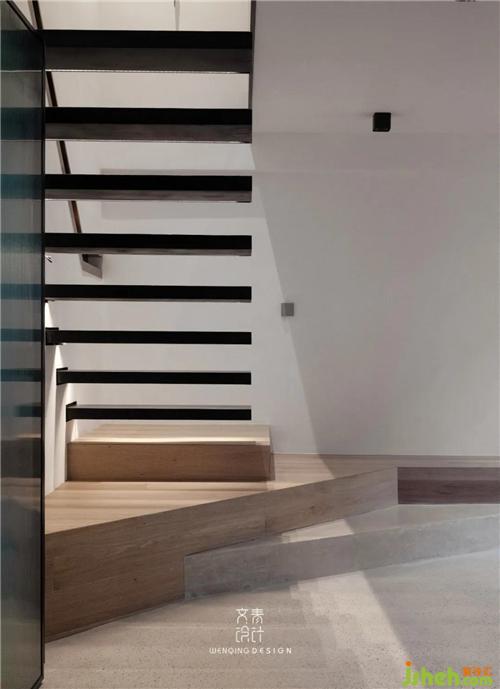 通往地下室的樓梯采用懸浮式設(shè)計(jì),懸浮在半空的樓梯宛如一件精致的藝術(shù)品,內(nèi)嵌暗藏式扶手、輕盈的踏步結(jié)構(gòu),既能節(jié)省空間,還能起到裝飾效果杭州裝修設(shè)計(jì)。